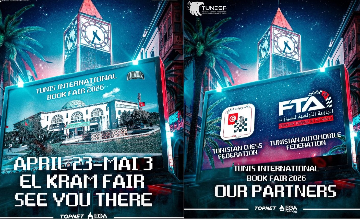 With surprises, rewards, and interactive experiences planned throughout the event, the Tunisian Esports Federation invites everyone to take part in this innovative concept. The initiative encourages visitors to read to enter and play to win, creating a balanced experience that celebrates both intellectual and competitive engagement.